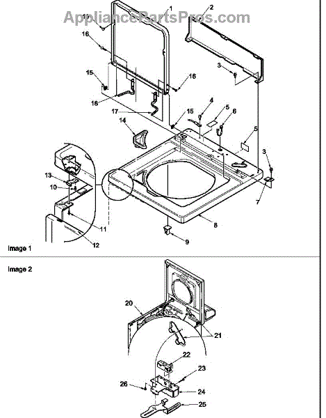 Parts for Speed Queen LWS34AW-PLWS34AW: Cabinet Top, Loading Door, And Door Switch Parts