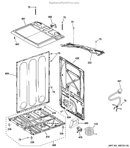 This replacement top cover is the dryer's upper cabinet panel in Diamond Gray. It restores proper fit and a clean exterior when the original is dented, bent, or rusted, and can help reduce vibration noise from a warped or loose top.