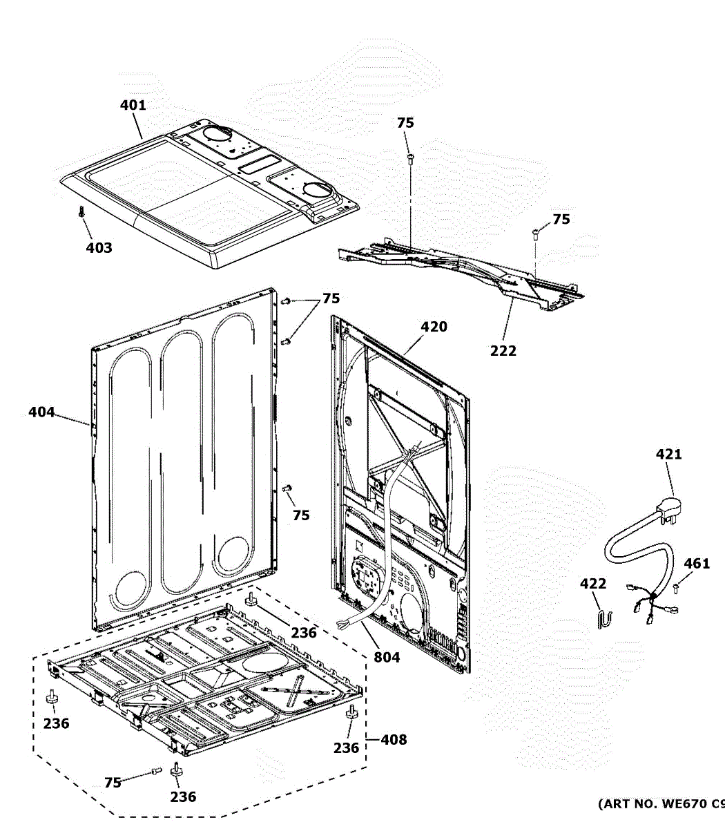 The Cover Top Low Depth is an OEM replacement part for GE dryers. It is designed to fit securely on top of the dryer, providing protection and a finished appearance.