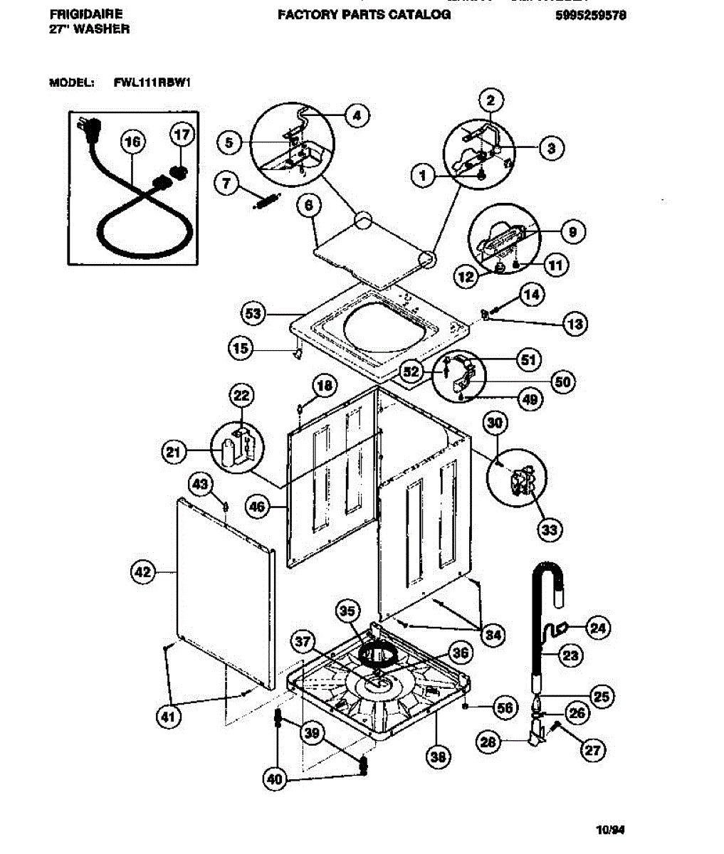 The Cord is an OEM replacement part for Frigidaire washing machines. Extending from the rear of the unit, it safely powers the washer through a connection to a wall outlet.