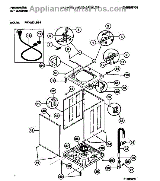 Parts for Frigidaire FWX223LBS1: 02 - Cabinet, Top Panel, Base Parts