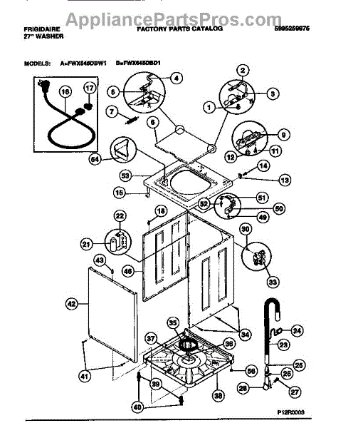 The Cord is an OEM replacement part for Frigidaire washing machines. Extending from the rear of the unit, it safely powers the washer through a connection to a wall outlet.