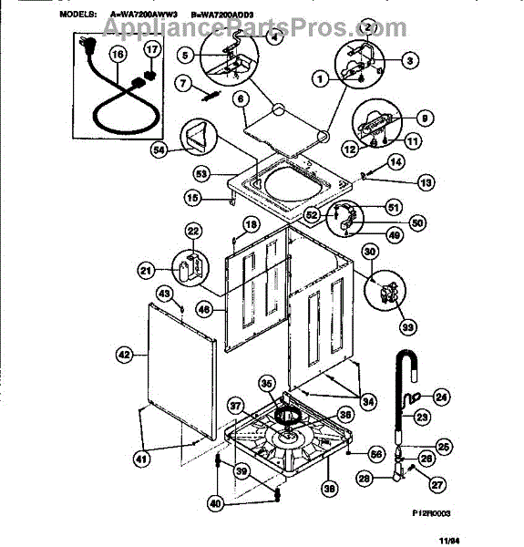 Parts for Frigidaire WA7200ADD3: 02 - Cabinet, Top Panel, Base Parts