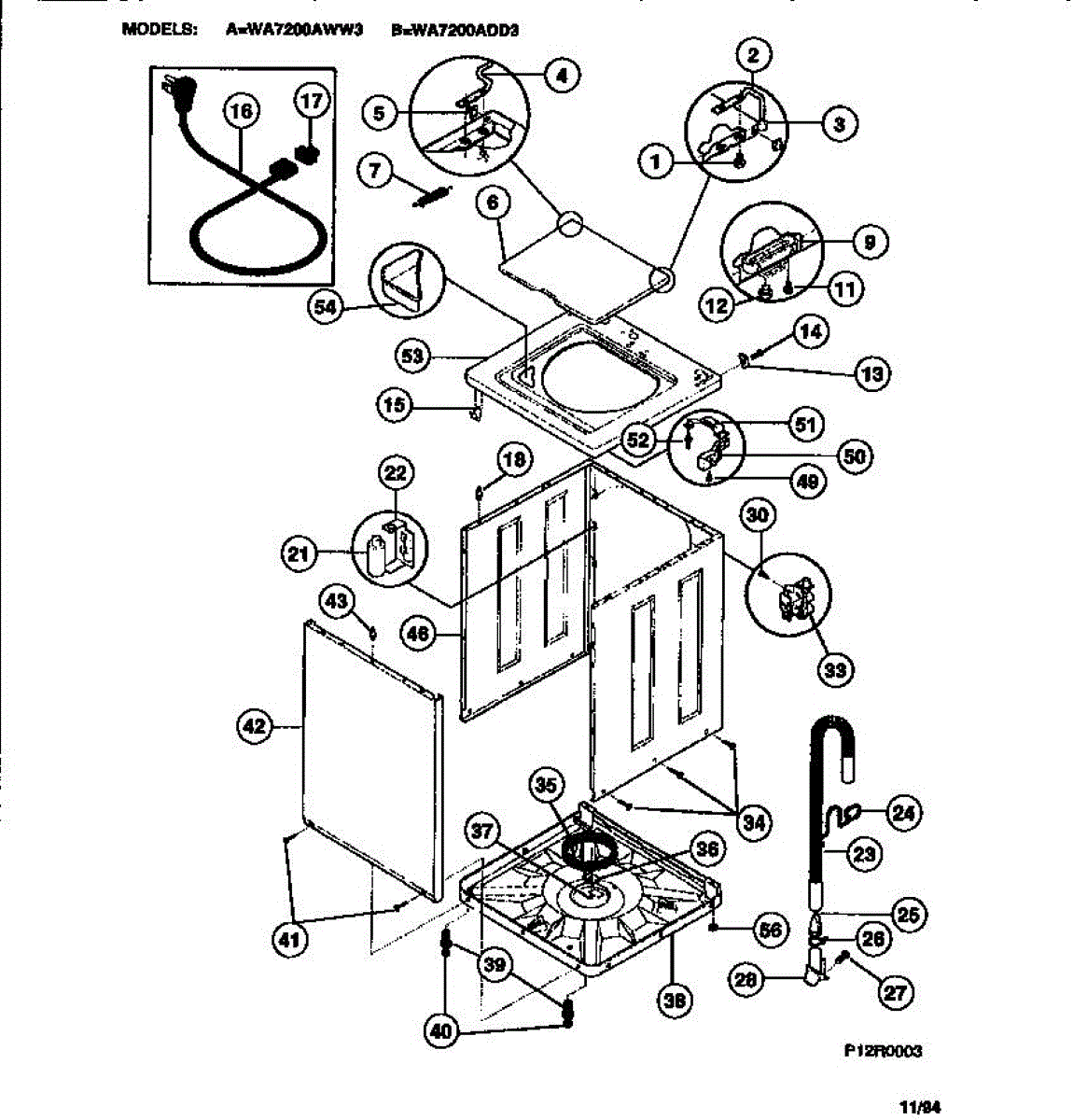 The Cord is an OEM replacement part for Frigidaire washing machines. Extending from the rear of the unit, it safely powers the washer through a connection to a wall outlet.
