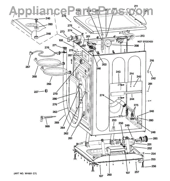 • Provides the mounting point for a suspension spring that helps carry the tub's weight