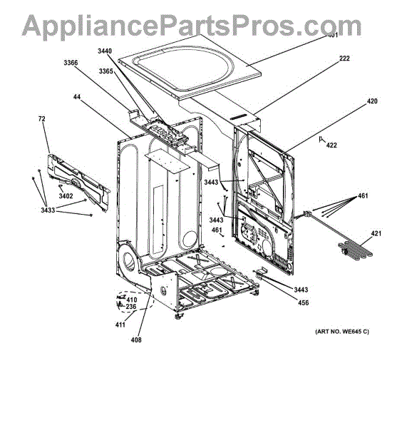 This replacement rear panel and fuse cover protects the appliance's rear electrical area, shielding the fuse assembly and wiring while restoring safe access for service. It fits where the original rear fuse cover is installed. What it does: