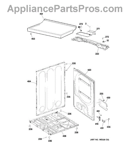 This replacement rear panel and fuse cover protects the appliance's rear electrical area, shielding the fuse assembly and wiring while restoring safe access for service. It fits where the original rear fuse cover is installed. What it does: