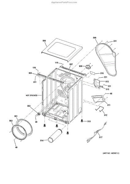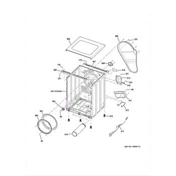 The EXHAUST DUCT ASSEMBLY is an OEM part for GE dryers. It incorporates both the exhaust duct that routes hot air out of the dryer and the duct housing shielding internal dryer components. This assembly works to expel moist air produced during cycles while simultaneously protecting internal wiring and other sensitive parts.