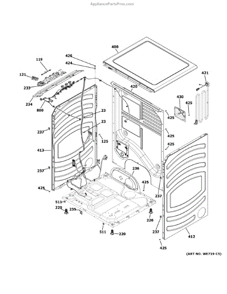 The Top Panel is an OEM component specifically designed for GE laundry machines. It serves as the decorative outer covering of the dryer, protecting internal components while including features like control buttons and displays.