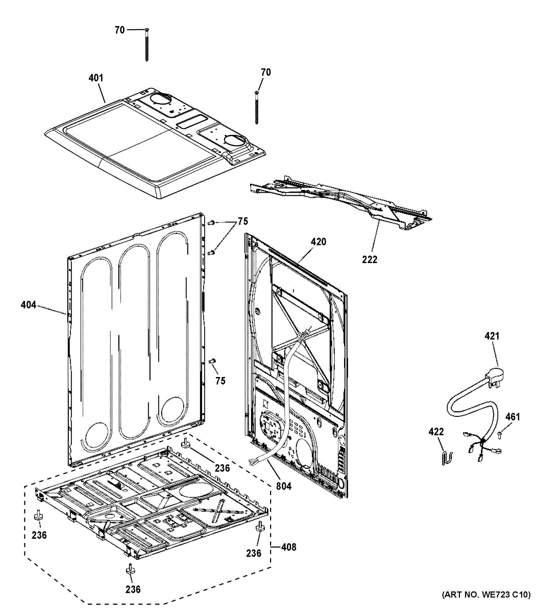 The Cover Top Low Depth is an OEM replacement part for GE dryers. It is designed to fit securely on top of the dryer, providing protection and a finished appearance.