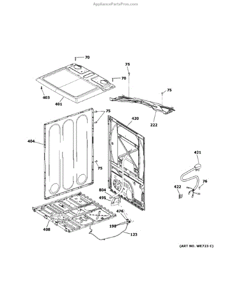 The Cover Top High Depth is an OEM part for GE dryers. It is a cover for the top area of the dryer near the vent that extends deeper than a standard top cover. This cover protects internal components and provides an aesthetic covering for the dryer cabinet.