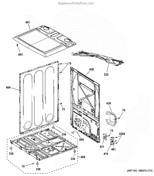 The Cover Top Low Depth is an OEM replacement part for GE dryers. It is designed to fit securely on top of the dryer, providing protection and a finished appearance.