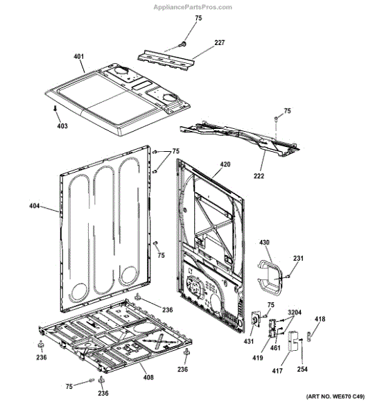 The Cover Top High Depth is an OEM part for GE dryers. It is a cover for the top area of the dryer near the vent that extends deeper than a standard top cover. This cover protects internal components and provides an aesthetic covering for the dryer cabinet.