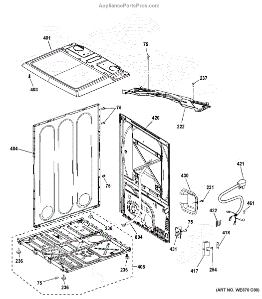 The Cover Top High Depth is an OEM part for GE dryers. It is a cover for the top area of the dryer near the vent that extends deeper than a standard top cover. This cover protects internal components and provides an aesthetic covering for the dryer cabinet.