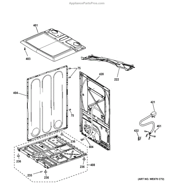 The Cover Top Low Depth is an OEM replacement part for GE dryers. It is designed to fit securely on top of the dryer, providing protection and a finished appearance.
