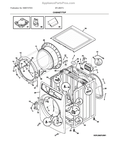 The Hinge Assembly is an OEM replacement part for Frigidaire washing machines. It is the mechanism that allows the washer door to open and close properly.