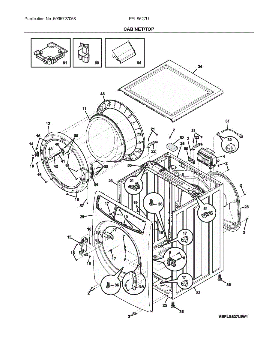 Wire harness for front-load washers. Connects electrical components to the control board. Replace if wires are frayed, connectors damaged, or broken.