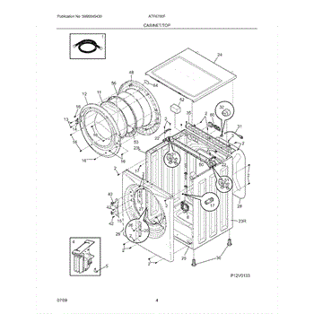 The Outside Door Panel replaces a cracked or broken outer trim on your washer door. It restores appearance and alignment, supporting the door glass and handle so the door latches correctly and cycles can start.