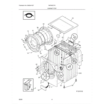 The Outside Door Panel replaces a cracked or broken outer trim on your washer door. It restores appearance and alignment, supporting the door glass and handle so the door latches correctly and cycles can start.