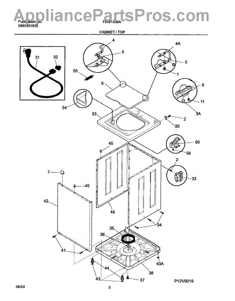 Protects the power cord where it passes through the washer cabinet. Replace if cracked, worn, or missing to prevent cord chafing and wire exposure.