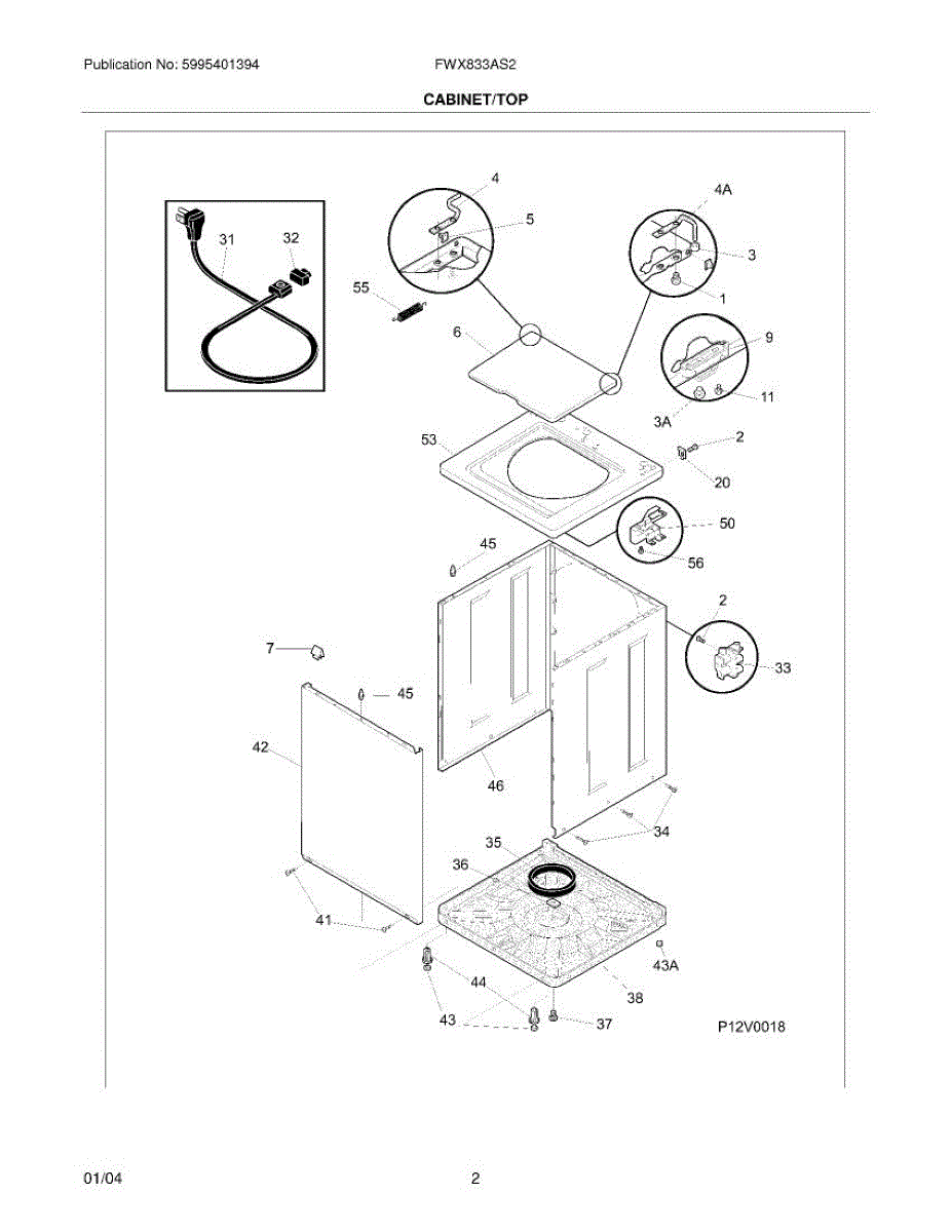 Parts for Frigidaire FWX833AS2: 03 - Cabinet / Top Parts
