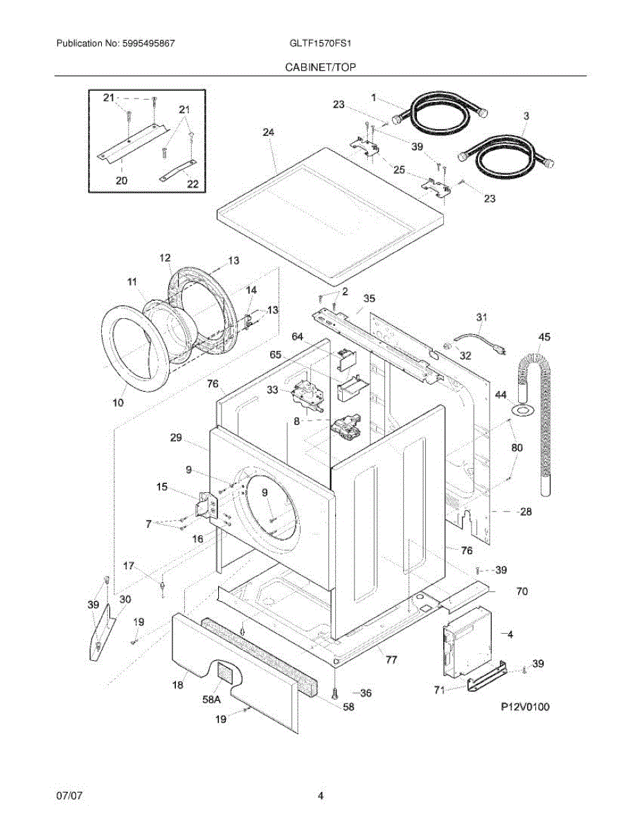 The Drain Hose is an OEM part for Frigidaire washing machines. This hose is essential for directing used water out of the washing machine and into the household drain system, ensuring efficient water removal after each wash cycle.