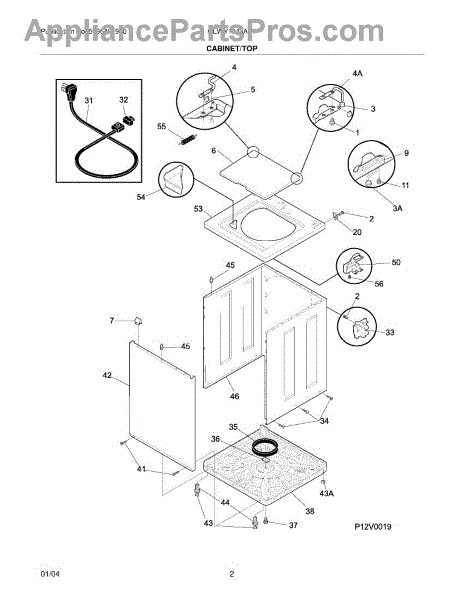 Parts for Frigidaire GLWY1343AS1: 03 - Cabinet / Top Parts