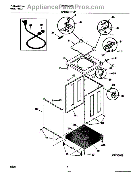 Protects the power cord where it passes through the washer cabinet. Replace if cracked, worn, or missing to prevent cord chafing and wire exposure.