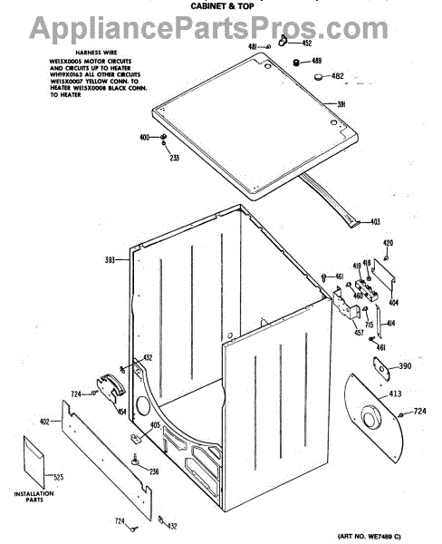 Parts for Ge DDE4000MCL: 02 - Cabinet & Top Parts