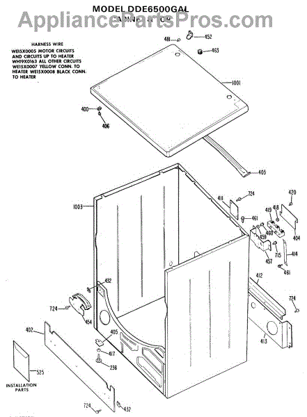 Parts for Ge DDE6500GAL: 02 - Cabinet & Top Parts