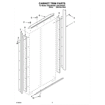 This screw is used to secure the handle end cap to the center of the door. The screw size measures 8-18 x 1/2 inches.