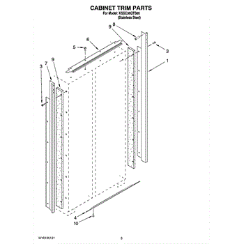 This screw is used to secure the handle end cap to the center of the door. The screw size measures 8-18 x 1/2 inches.