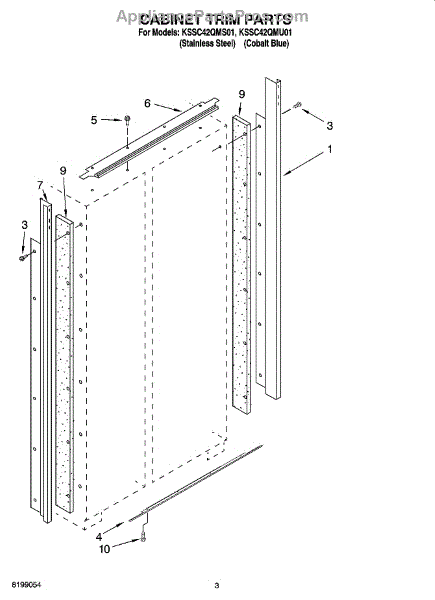 This screw is used to secure the handle end cap to the center of the door. The screw size measures 8-18 x 1/2 inches.