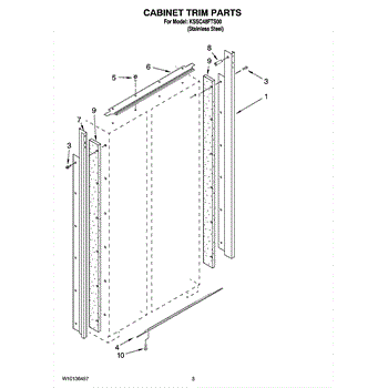 This screw is used to secure the handle end cap to the center of the door. The screw size measures 8-18 x 1/2 inches.