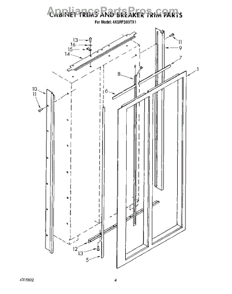 Parts for Whirlpool 4KSRF36DTX1: 02 - Cabinet Trims And Breaker Trim Parts