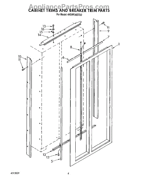 Parts for Whirlpool 4KSRF36DTX2: 02 - Cabinet Trims And Breaker Trim Parts