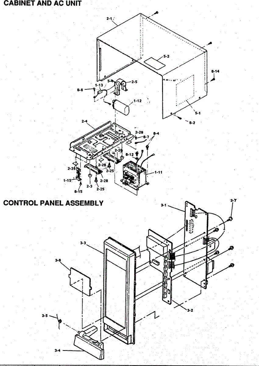 Parts for Sharp R-20BT: Cabinet / Ac Unit / Control Panel Assy Parts