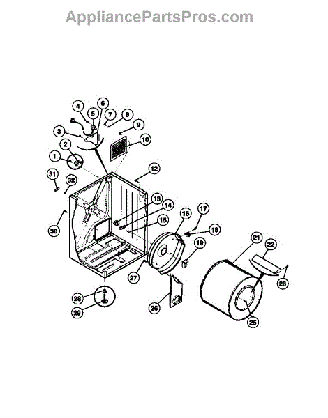 The Drum Bearing Bracket is an OEM replacement part for Frigidaire dryers. It holds and supports the drum bearing, which allows the dryer drum to spin smoothly during the tumbling and drying cycle. Causes of failure can be cracking or breaking of the bracket over time due to constant use and stress. Improper installation that puts strain on the bracket may also lead to issues. Symptoms of a bad drum bearing bracket include: