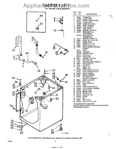 Parts for Whirlpool CWA2004W2: 02 - Cabinets Parts