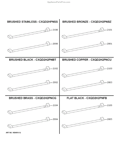 This replacement dishwasher door handle restores a secure, finished grip and the original champagne-gold appearance with matching café-style trim. It replaces a worn, loose, or cosmetically damaged handle so the door opens and closes properly. What it does: