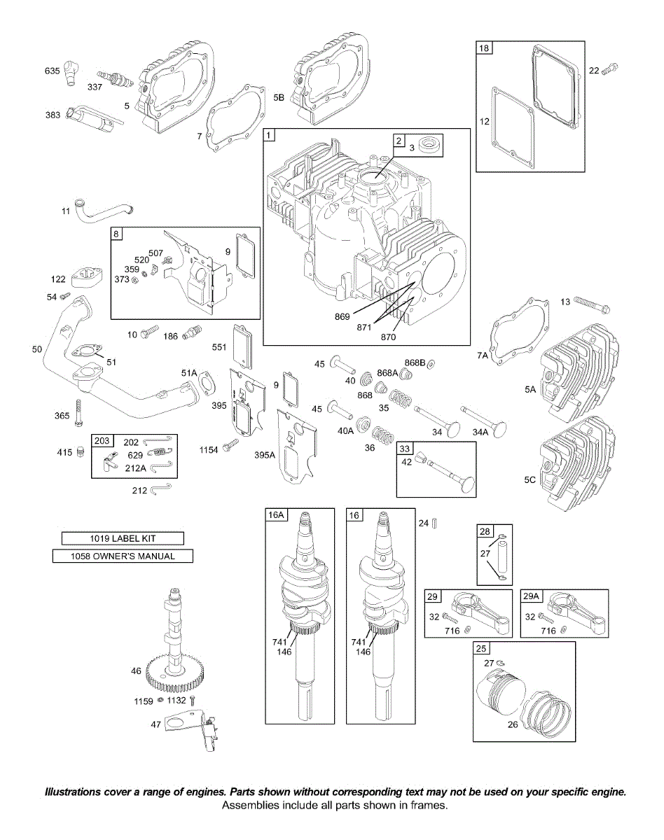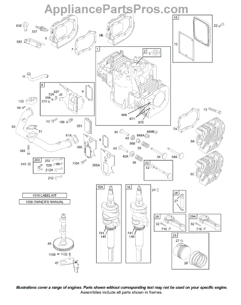 Parts for Briggs & Stratton 42A777-1286-01: Cam, Crankcase Cover, Crankshaft, Cylinder Head, Pistons, Valves Parts