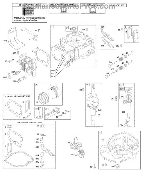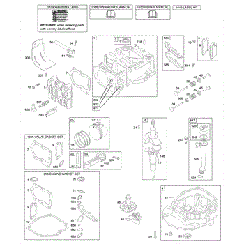 Parts for Briggs & Stratton 123J02-0100-E1: Cam, Crankshaft, Cylinder, Engine Sump, Kit / Gasket, Lubrication, Piston Group, Valves Parts