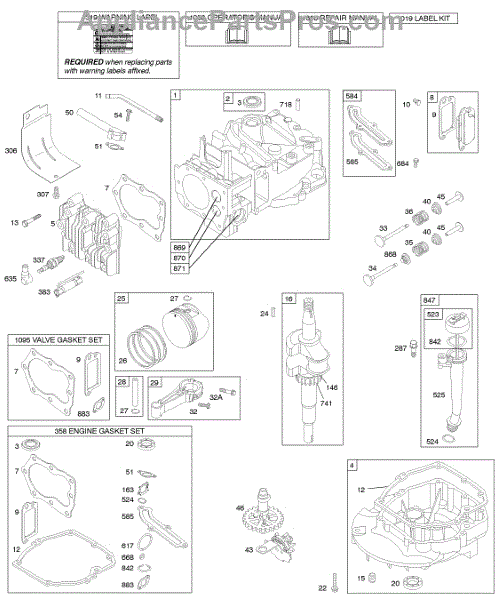 Parts for Briggs & Stratton 12Y802-0110-E1: Cam, Crankshaft, Cylinder, Engine Sump, Kit / Gaskets, Lubrication, Piston Group, Valves Parts