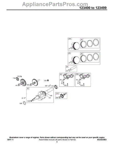 Parts for Briggs & Stratton 123432-0101-E1: Cam, Crankshaft, Piston Group Parts