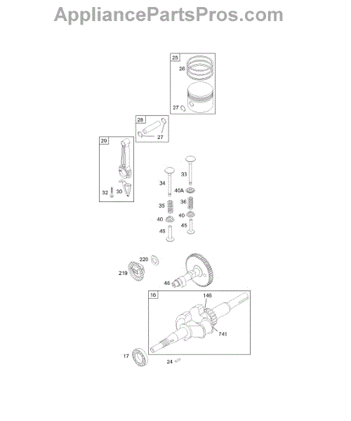Parts for Briggs & Stratton 133432-1175-E1: Cam, Crankshaft, Piston Group, Valves Parts