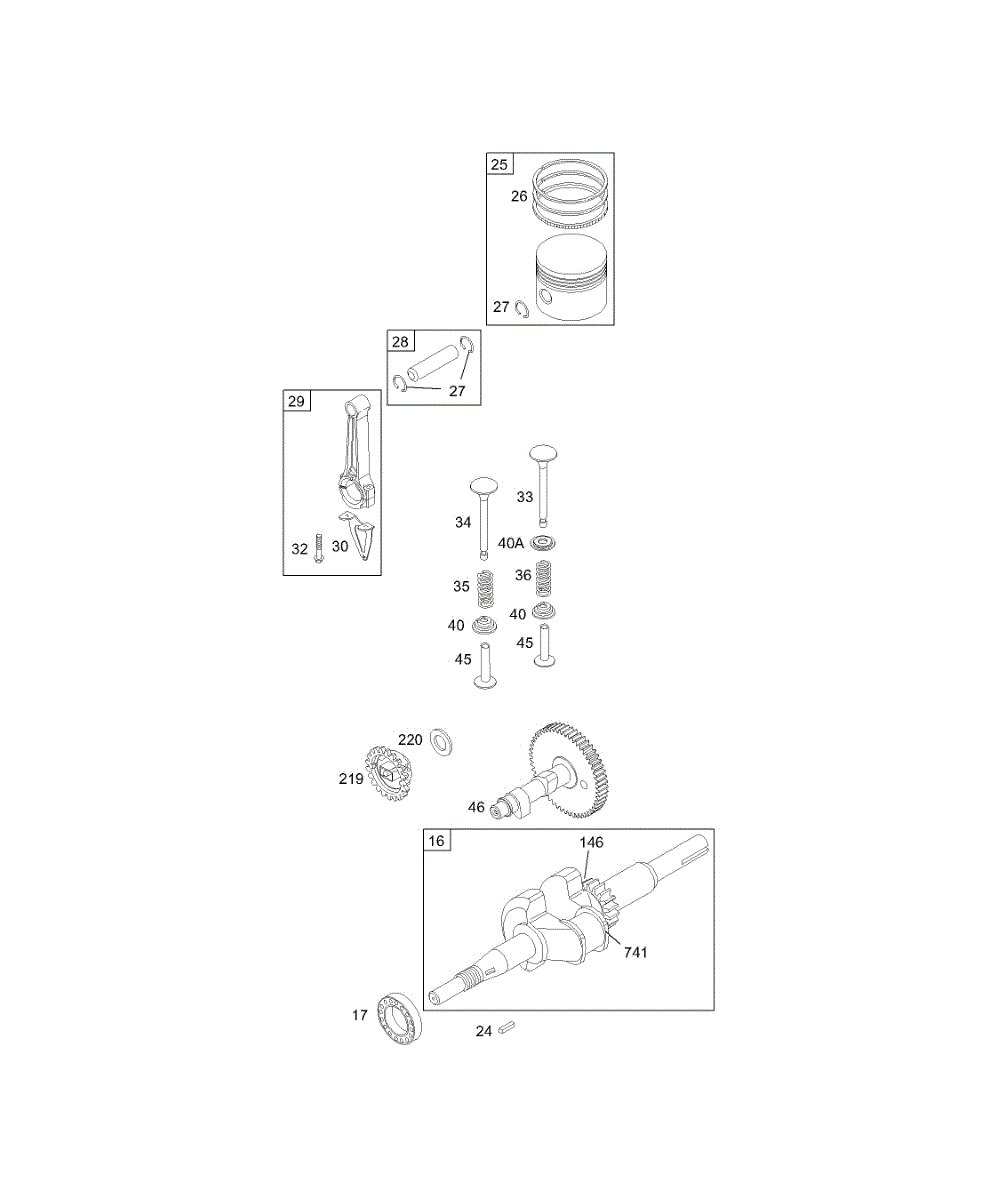 Parts for Briggs & Stratton 133437-0050-01: Cam, Crankshaft, Piston Group, Valves Parts