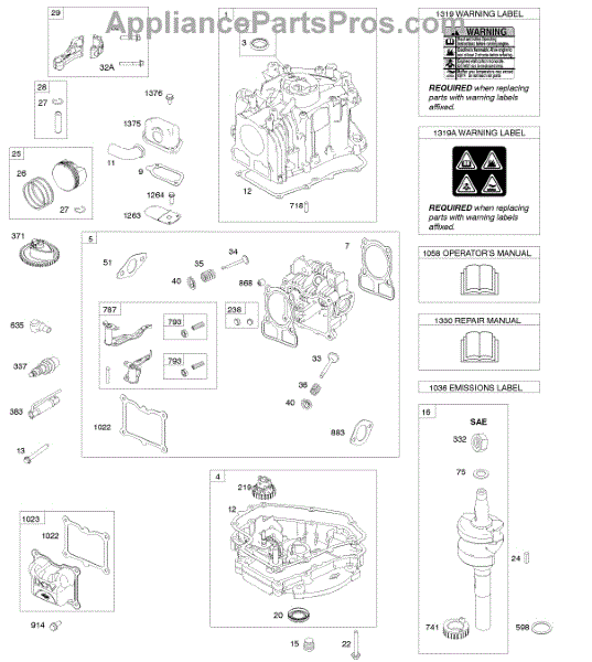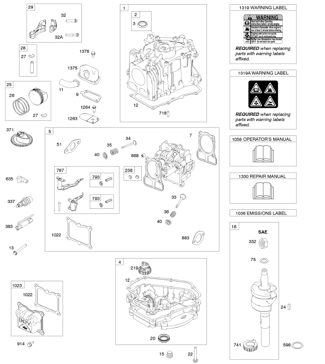 Parts for Briggs & Stratton 090602-3113-H8: Cam Gear, Crankcase Cover / Sump, Crankshaft, Cylinder, Cylinder Head, Piston / Rings / Connecting Rod Parts