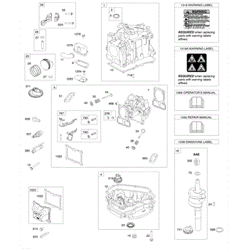 Parts for Briggs & Stratton 100802-0158-H8: Cam Gear, Crankcase Cover / Sump, Crankshaft, Cylinder, Cylinder Head, Piston / Rings / Connecting Rod Parts