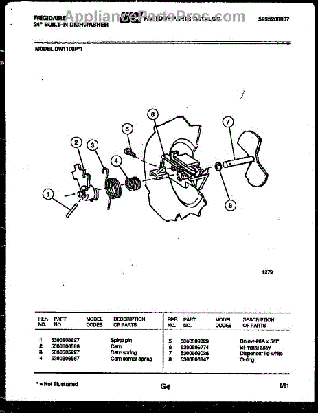 Parts for Frigidaire DW1100PW1: 03 - Cam Parts