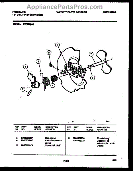 Parts for Frigidaire DW2508A1: 03 - Cam Parts